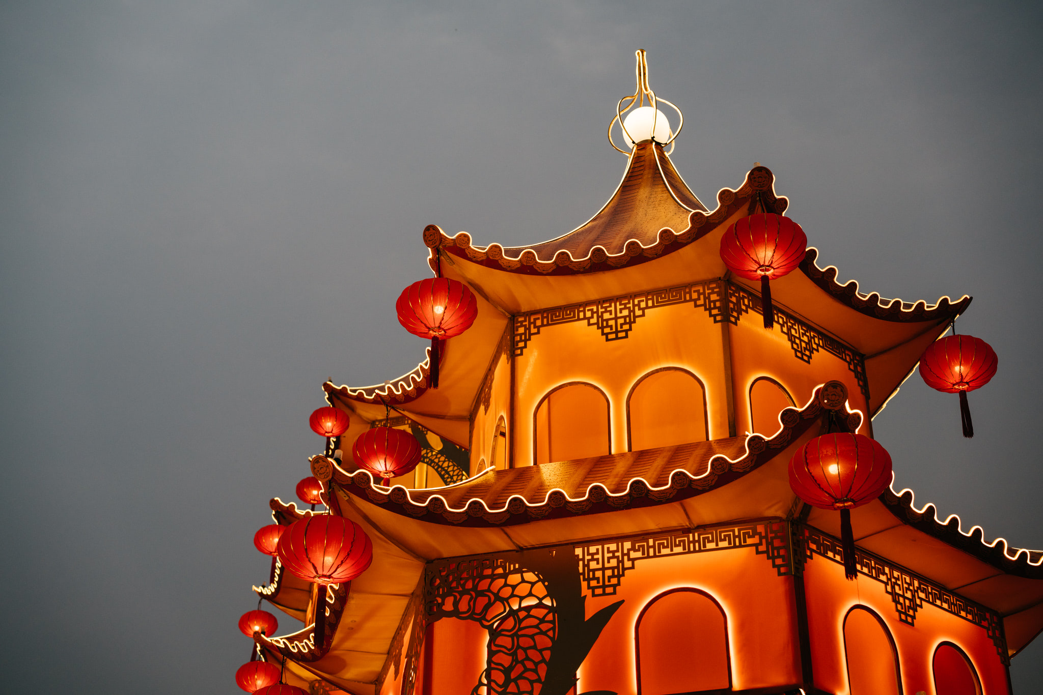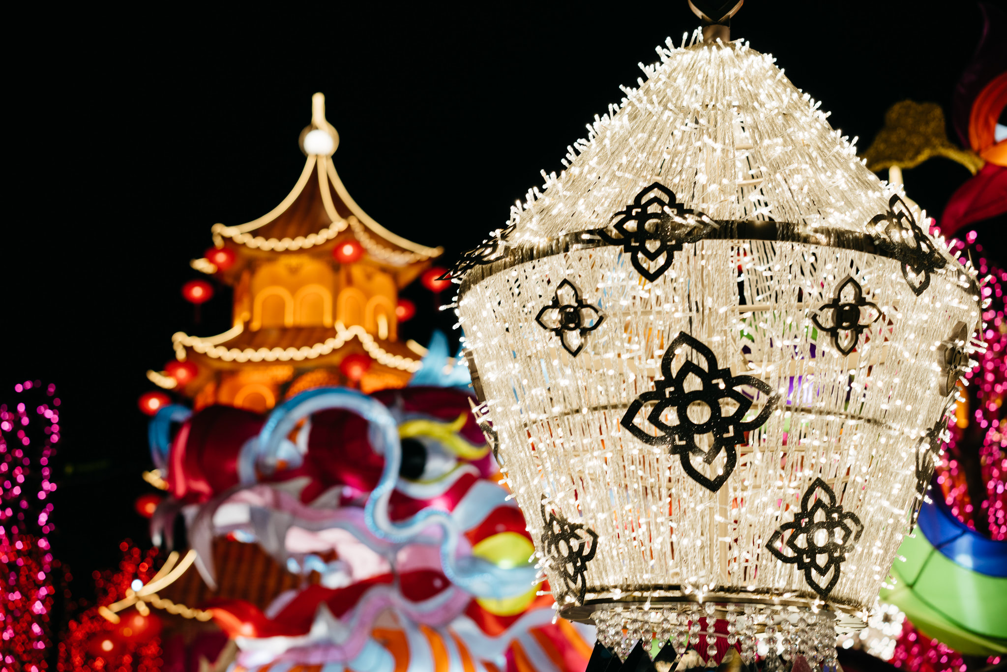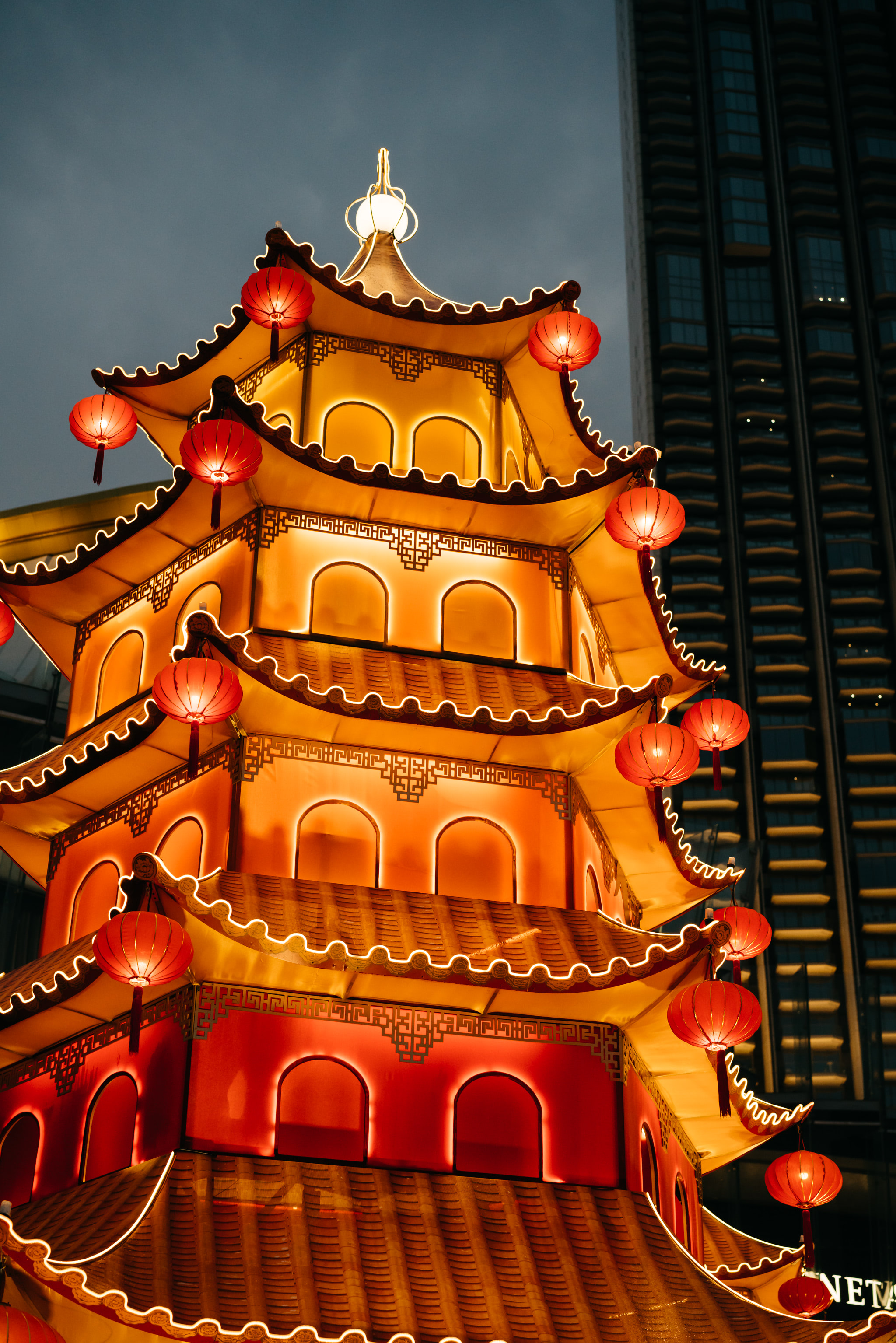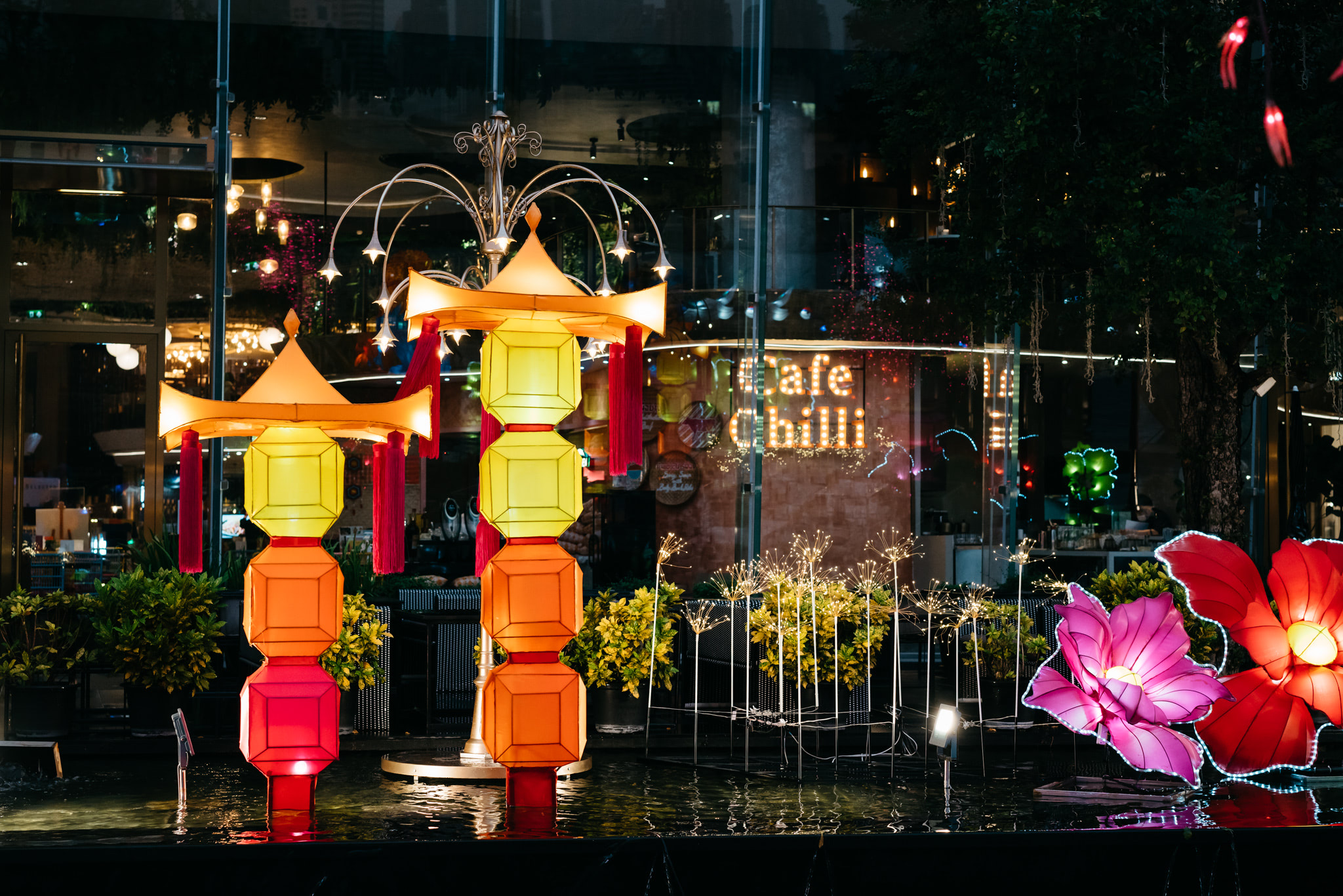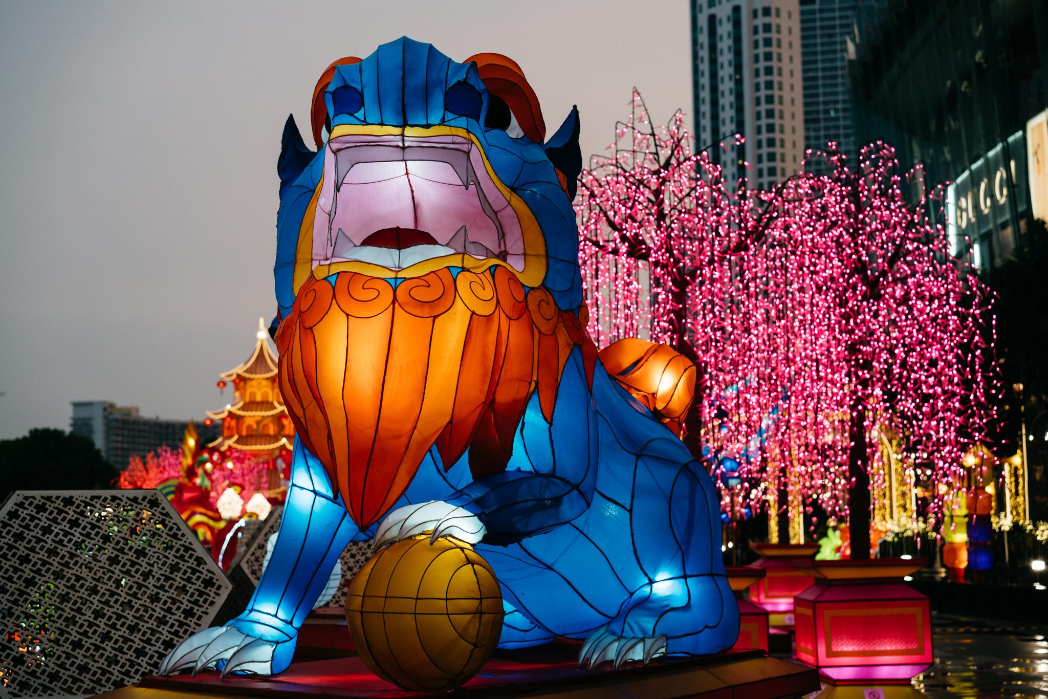 A decorative installation on the occasion of the Chinese New Year in the square in front of the ICONSIAM shopping mall in Bangkok, Thailand.