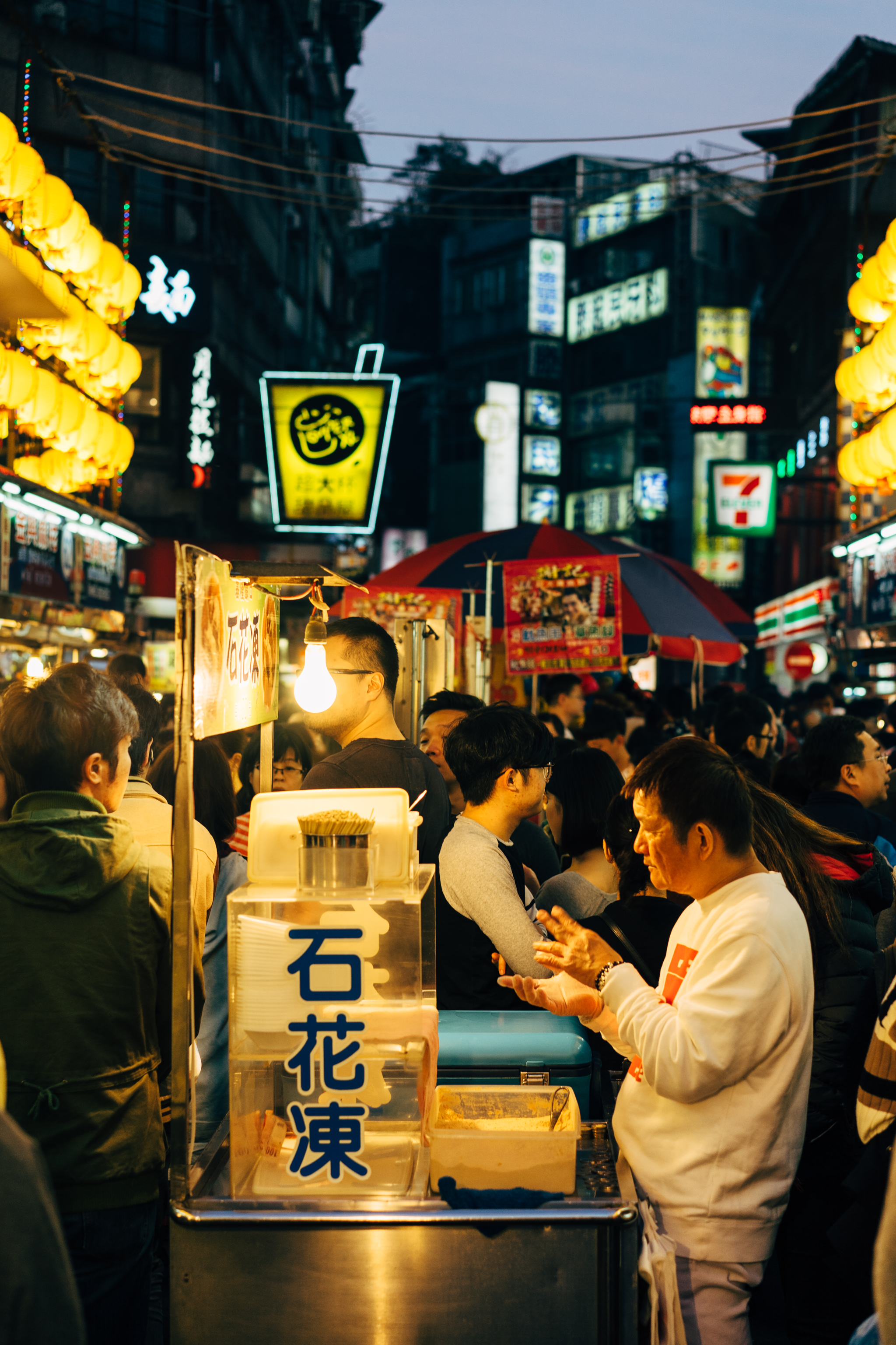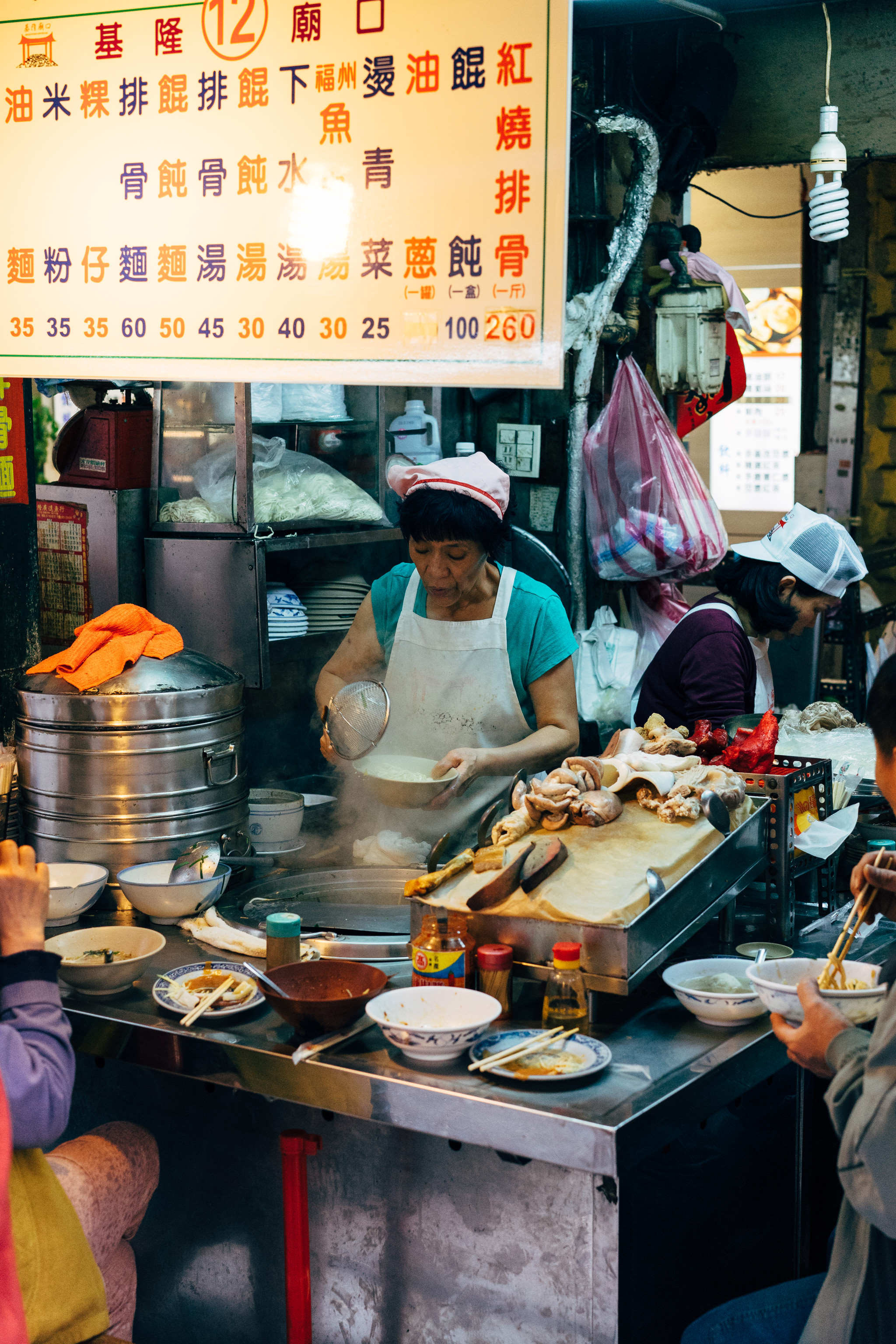 In addition to the street stalls, there are also many restaurants with seating at the night market in Keelung.