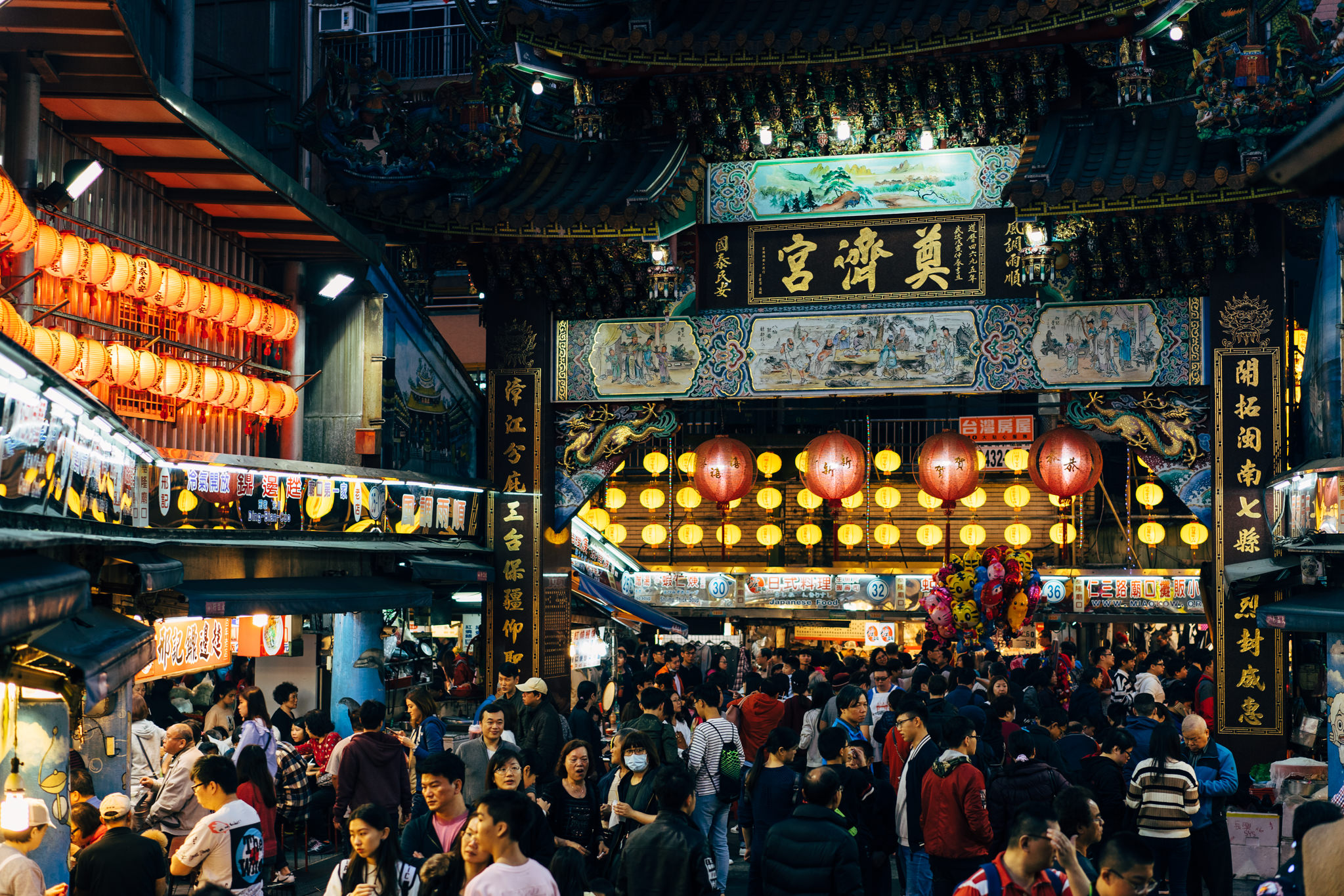 The historical centre of the night market is the Dianji Temple (奠濟宮). In former times temples were the heart of cities and shops always wanted to be close to them. On the one hand for superstitious reasons, on the other hand for economic reasons.