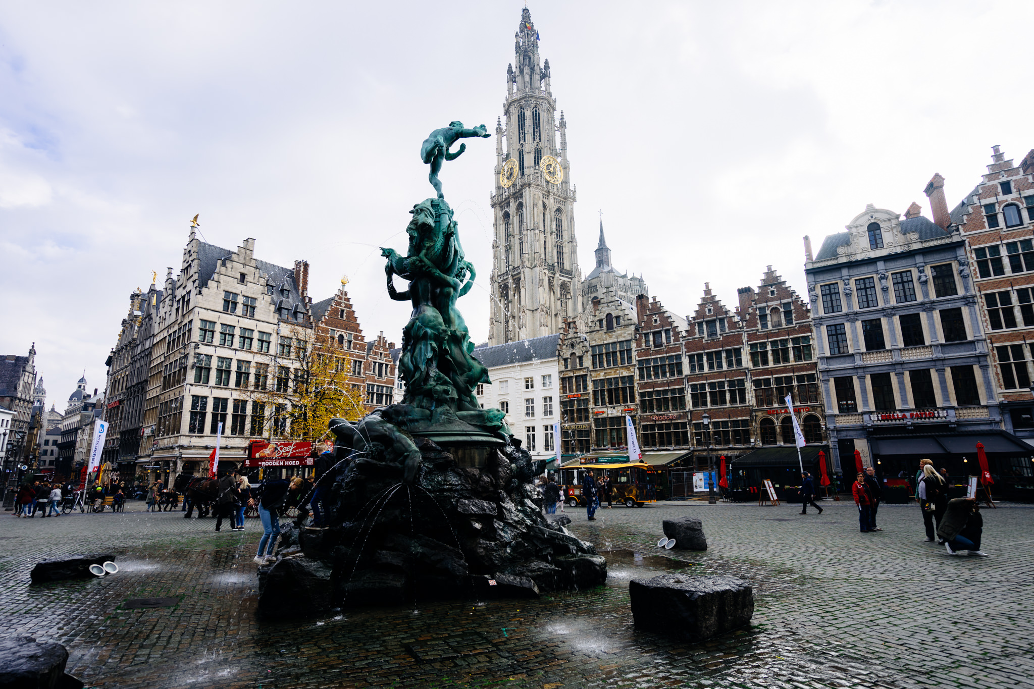 The market square (Grote Markt) is the historical centre of town and is framed by typical medieval Flemish buildings. The City Hall of Antwerp is still located there today.
