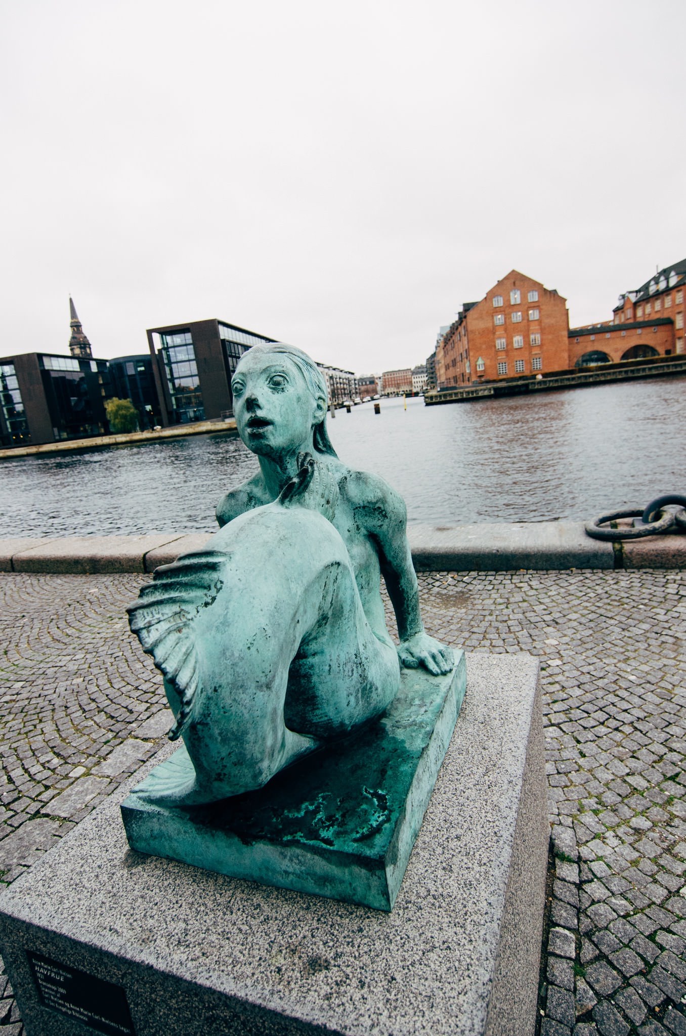 In 1913 the Copenhagen sculptor Edvard Eriksen created the bronze figure "Den lille Havfrue". The mermaid was inspired by the Danish poet Hans Christian Andersen's fairy tale of the same name and is inspired in its design by Henri Chapu's sculpture of Jeanne d'Arc. The bronze sculpture sits on a rock and, with a height of just 125 cm, is one of the smallest landmarks in the world.