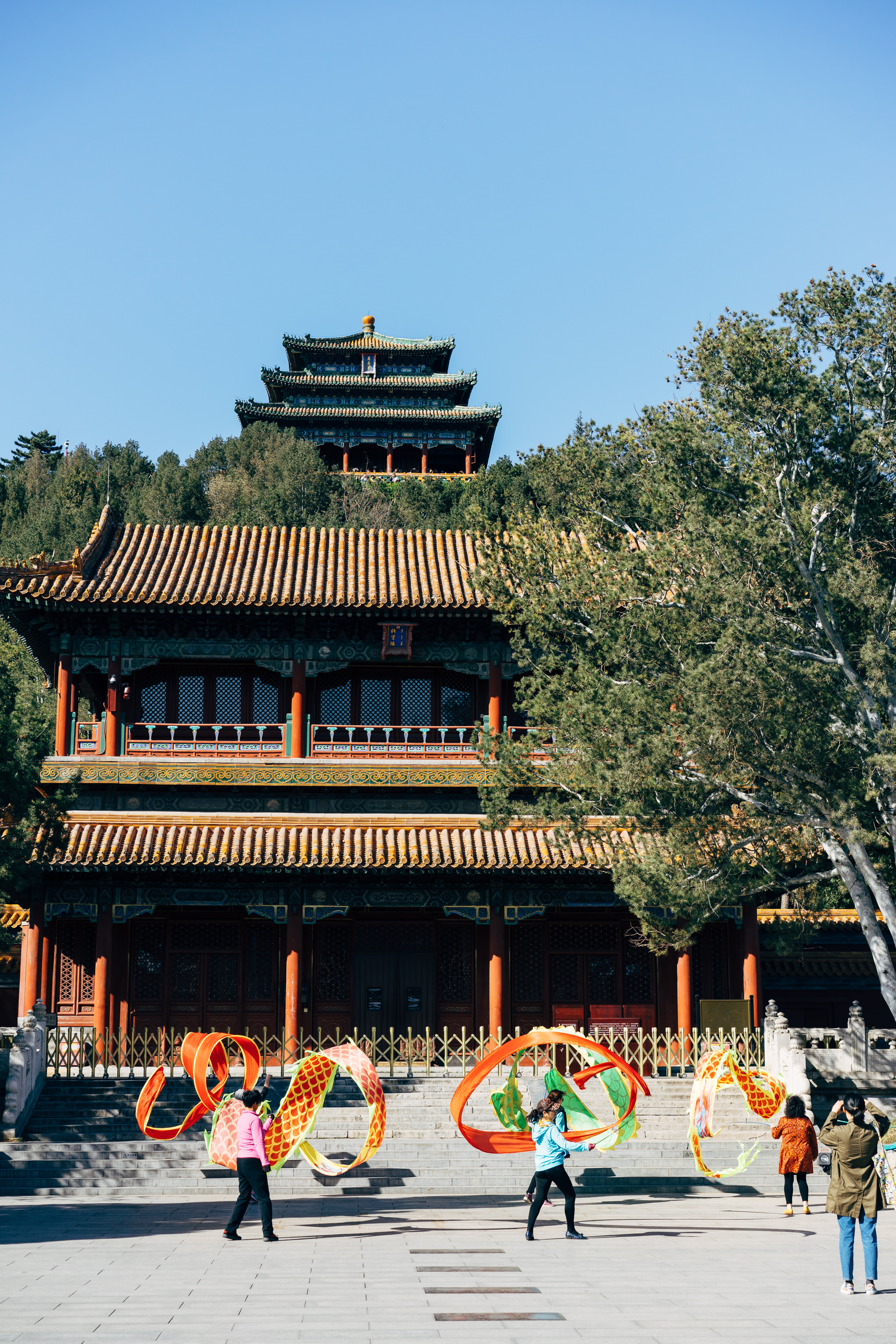 If you cross the Forbidden City in Beijing from south to north and leave through the Gate of Divine Might, you will reach Jingshan Park. The history of the park goes back to the Liao and Jin Dynasties. In the area is the artificially created Jingshan hill. From the top of it, you get a good view of the Forbidden City.