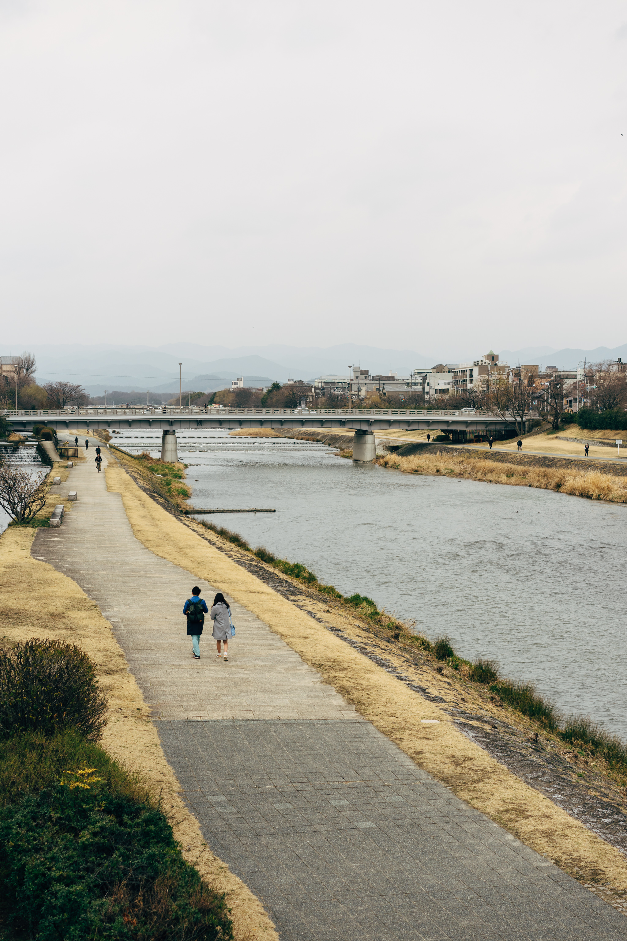 The city is surrounded by mountains in three directions. Three rivers flow through the Yamashiro (or Kyoto) Basin. The Kamo River with its wide riverbanks is a popular walking spots for residents and visitors.