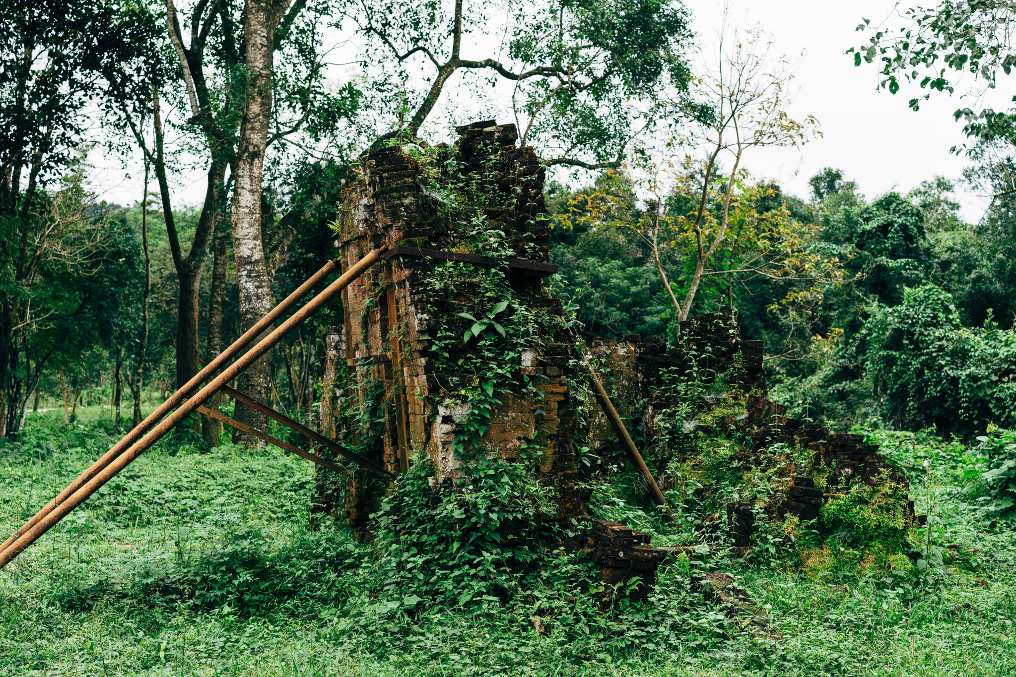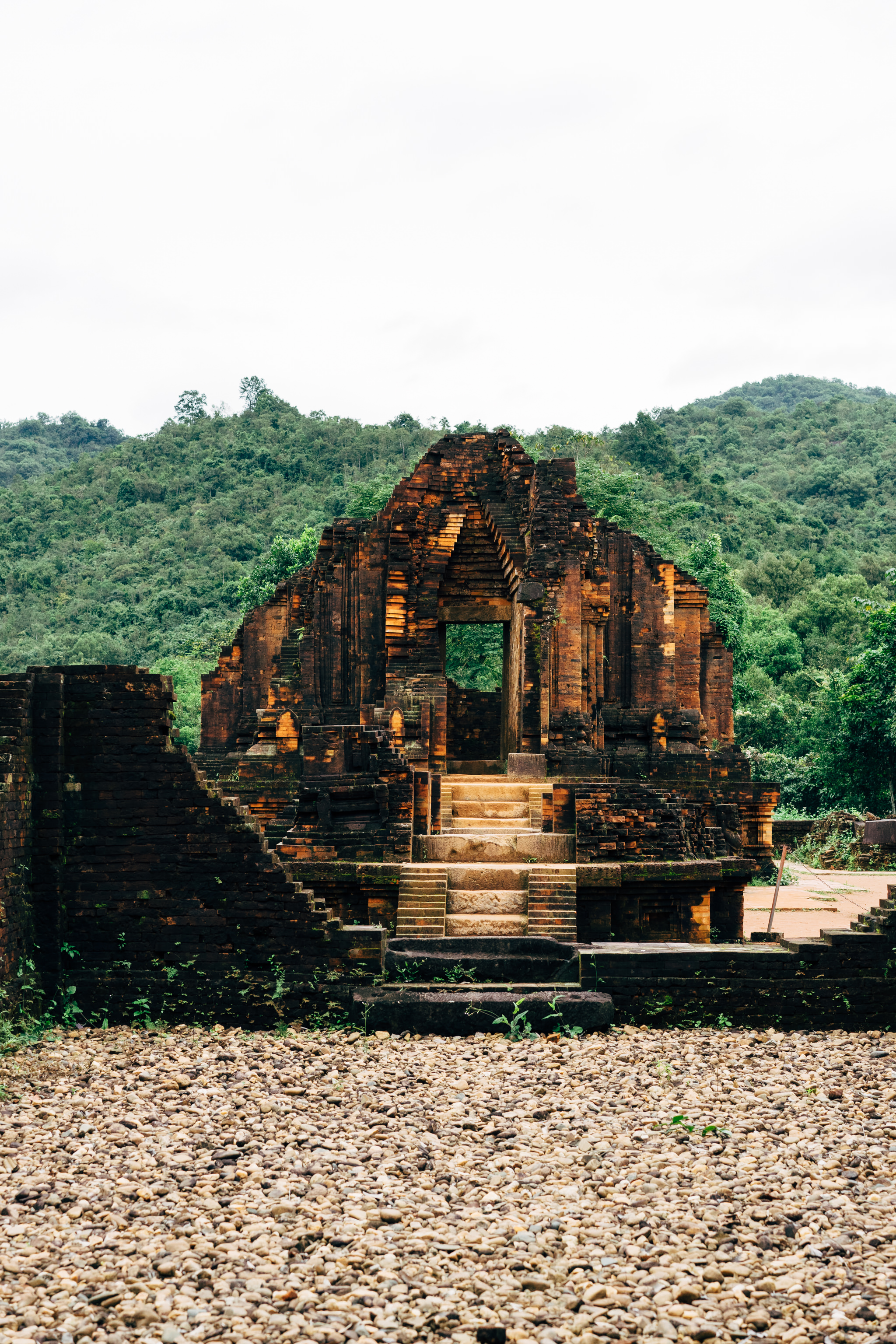 During one week in August 1969, a large majority of the architecture of Mỹ Sơn was destroyed. American Air Force aircrafts threw bombs at the area. The craters are still visible today.