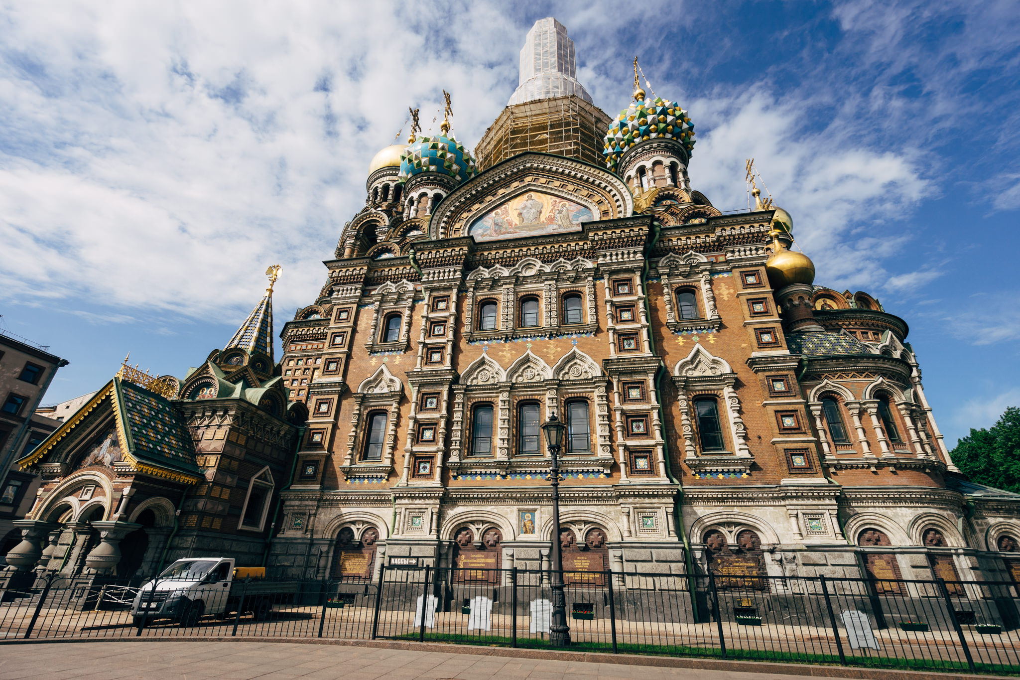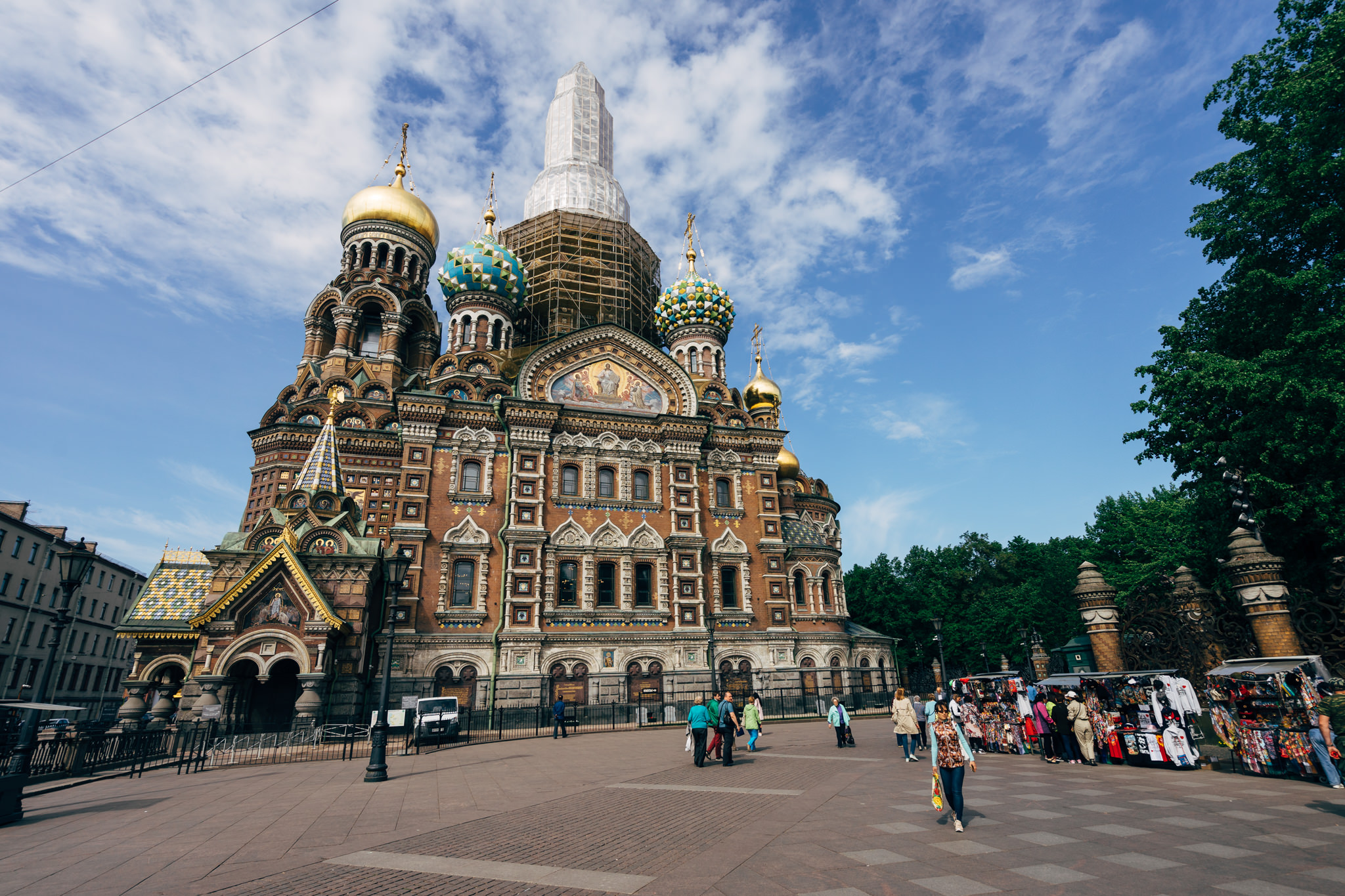 On Griboedov Canal lies one of the most magnificent churches in town, The Church of the Savior on Spilled Blood. The church was built between 1883 and 1907 on the site where Emperor Alexander II was fatally wounded in March 1881. The beautiful decoration of the facade and the typical onion domes of Russian Orthodox churches are noteworthy.