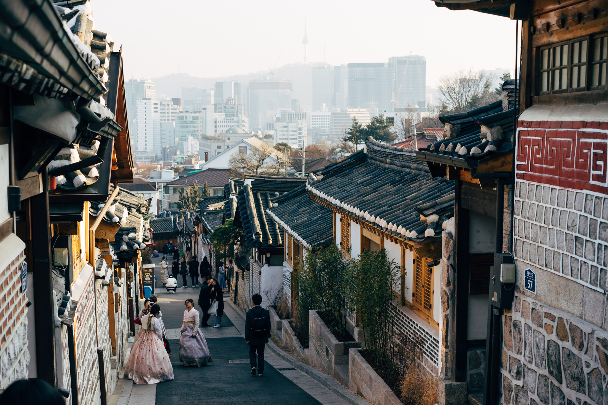 The narrow streets with their traditional houses and facades offer a pretty backdrop for souvenir pictures. In nearby shops you can rent Korean folk dresses to make the picture perfect and feel as if you were living in that time.